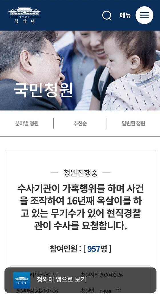 8월 14일 이 사건에 대하여 현직 경찰관이 재수사를 촉구하는 글을 청와대 국민청원에 올려 파장이 일었습니다.