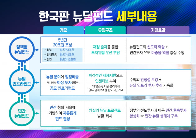 정부가 한국판 뉴딜정책의 일환으로 뉴딜펀드를 조성하겠다고 밝혔습니다.