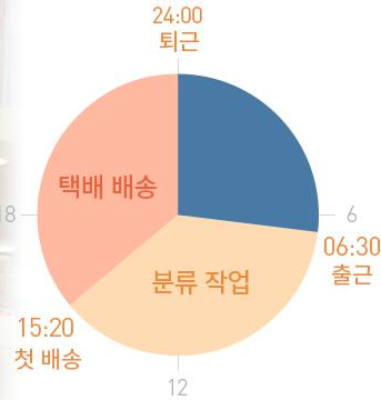 이후 이어진 배송시간에도 하루 평균 300~400개의 물량으로 시간에 쫓기기 일쑤이며 최대 8시간 가량 배송에 힘을 쏟아야 그날 물량을 마무리 할 수 있습니다.