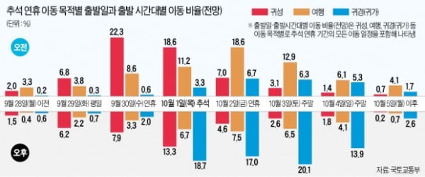 날짜별로 보면 귀성길에는 추석 전날인 30일 오전 시간대(9~10시)가 가장 혼잡할 전망입니다.
