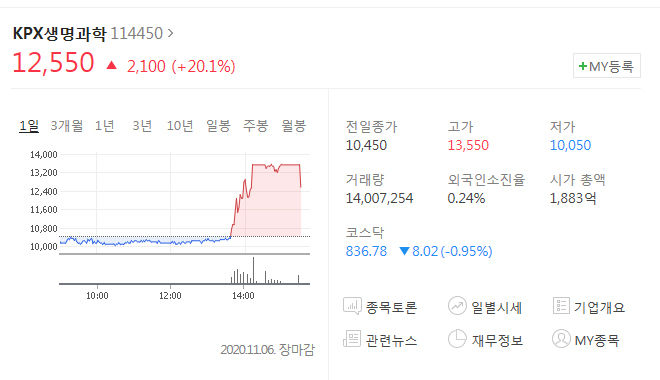 이 중 대장주는 단연 제일약품이라 할 수 있으며 KPX 생명과학은 화이자 관련주 중에 가장 핫한 종목으로 10월 중순 주가가 두배 가깝게 상승한 전례가 있습니다.