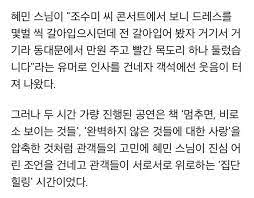 그러자 조수미는 자신의 트위터에 혜민의 발언을 언급하며 "관객에게 보는 즐거움까지 선사하고 싶어 노래 사이사이 물도 못 마시고 정성으로 준비한 드레스를 미친 듯 빨리 갈아 입고 무대로 뛰쳐나간답니다"라고 썼습니다.