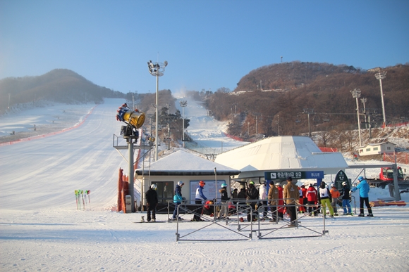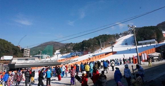 지산포레스트 리조트는 경기 이천에 위치한 스키장으로, 강남과 가까울 뿐더러 시설도 좋아서 주말에는 사람이 붐빈다.