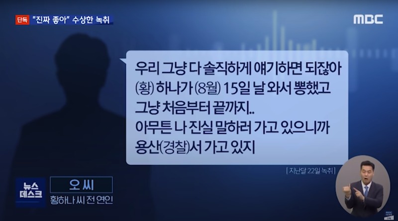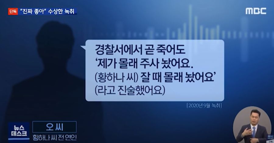 전남친 오씨가 황씨 몰래 자고있던 중에 뽕을 놨다고 진술한거죠.