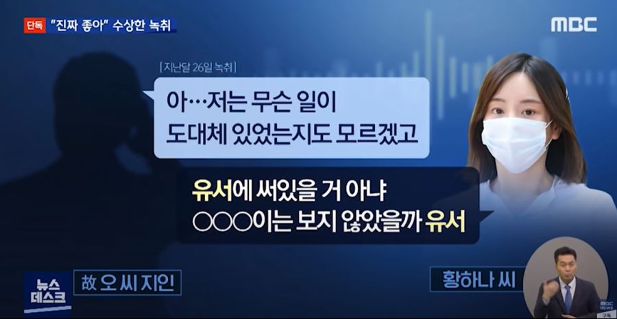 그런데 황하나는 연인이 사망했음에도 불구하고 슬퍼하기는 커녕 오씨의 유서가 존재하는지 오씨 지인들에게 물어 봤다고 하죠.