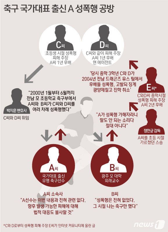 또한 기성용과 함께 가해자로 지목된 B씨는 "학폭이 있었다면 사과하겠지만 성폭력은 절대 없었다"고 말하며 의혹을 부인했습니다.