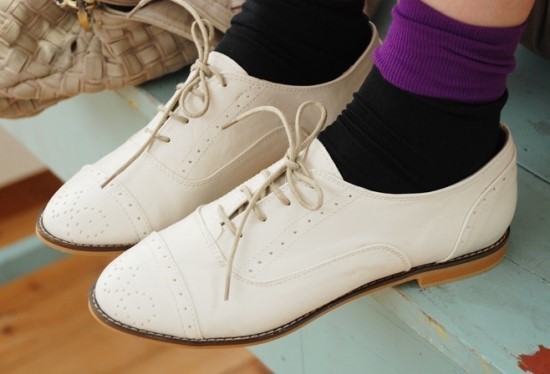 플랫슈즈보다 활동적인 신발을 원하신다면 옥스포드화를 추천합니다. 옥스포드화는 영국 옥스포드 대학의 학생들이 착용한 스타일이 유행하면서 붙은 이름인데요. 1800년대 전반에 남성과 여성이 모두 단추로 잠그는 부츠 또는 목이 긴 신발을 즐겨 신었던 것에 반해 옥스포드 슈즈는 복사뼈 높이의 끈으로 묶는 레이스업 신발로 용이하고 실용적이라서 그 당시 대학생들이 선호했다고 합니다. 처음에는 남성 구두의 종류였으나 1900년대 초반 여성들의 자유와 권리가 신장되면서 이전과 달리 활동적이고 건장한 여성의 이미지가 대두되며 여성들도 격식을 차리지 않아도 되는 활동과 운동 시에 이 신발을 주로 착용하였다고 합니다.