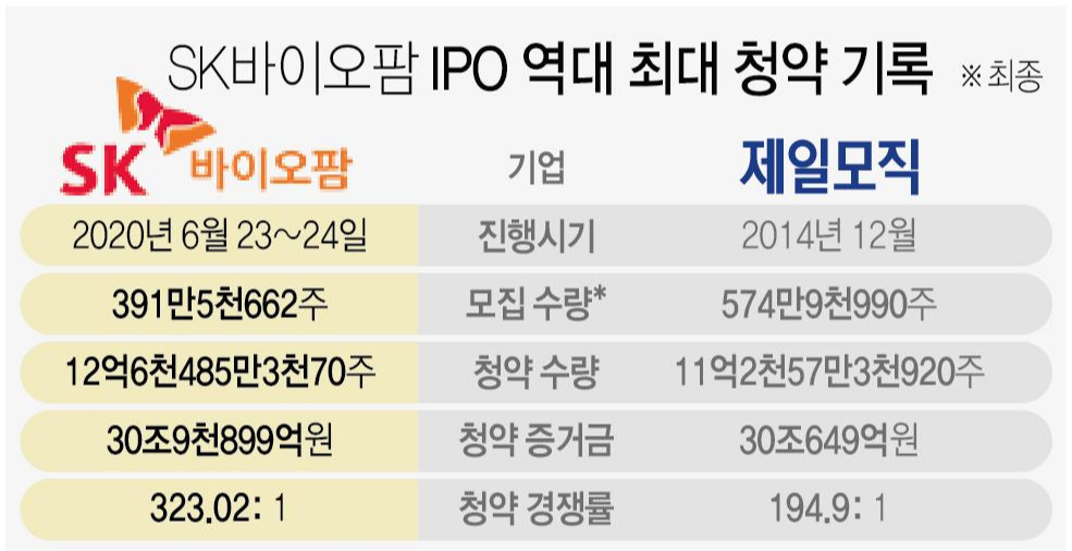 약 390만주(약 1,918억원)를 모집하는 이번 SK바이오팜에 몰린 돈은 총 31조에 달했으며 경쟁률만 해도 323.02대1이었다고 하는데요. 1억원의 청약 증거금을 내 2억원 어치의 SK 바이오팜 공모주를 청약한 고객이 실제 배정받는 주식이 12주에 그친만큼 많은 자금이 몰린 것입니다.