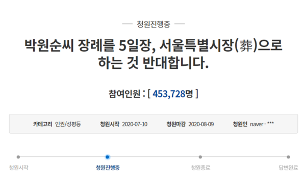 #4. 박원순 서울특별시장葬(상) 반대 청원 40만 돌파