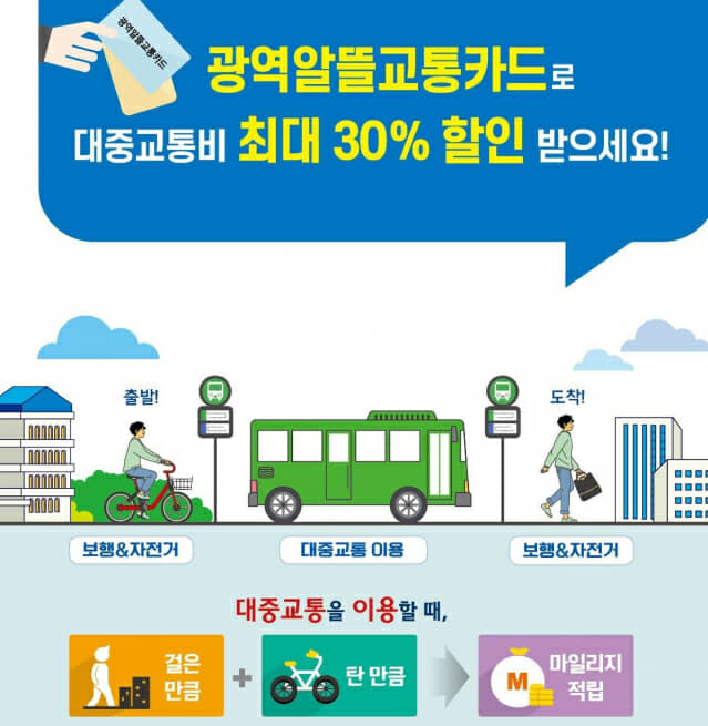 최대 30%의 교통비가 할인되는 '광역알뜰교통카드'에 대하여 알아보도록 하겠습니다!
